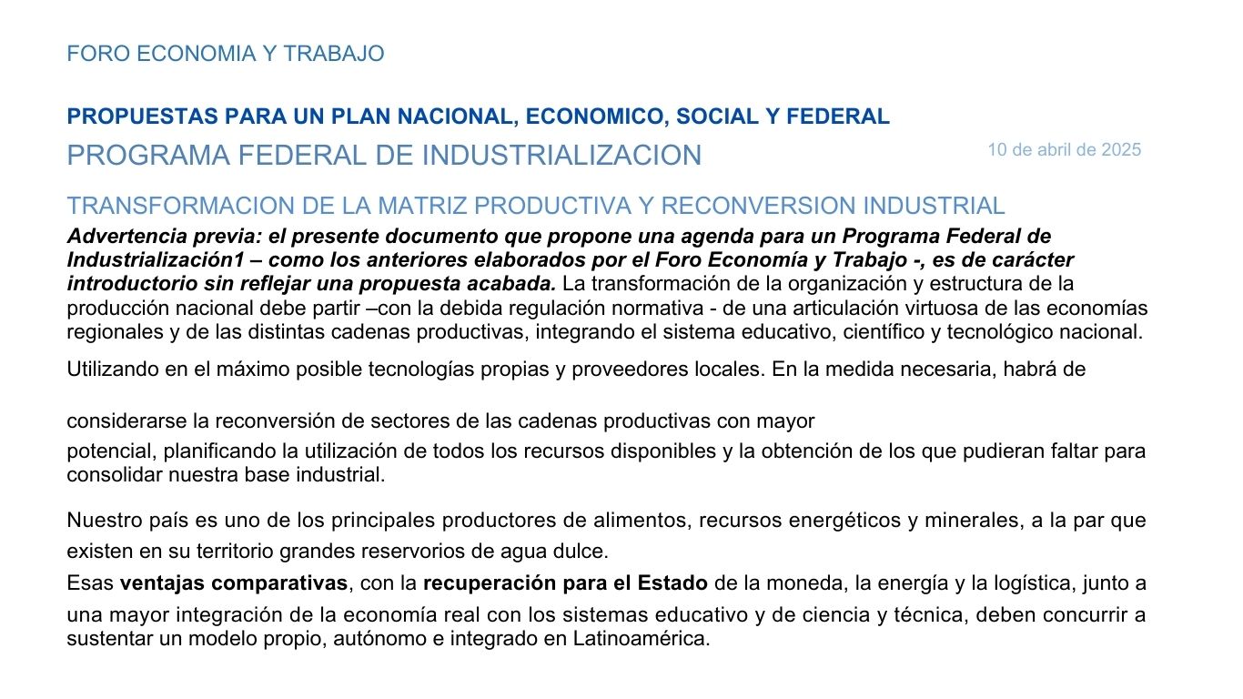 PROPUESTAS PARA UN PLAN NACIONAL, ECONOMICO, SOCIAL Y FEDERAL